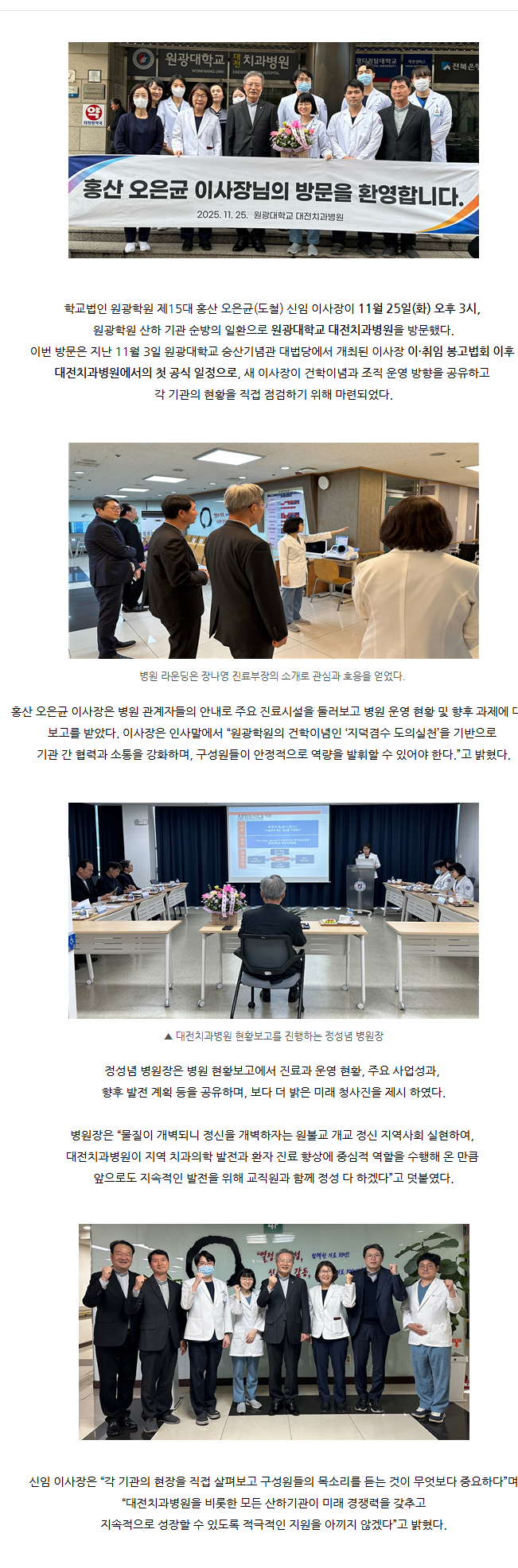 제15대 홍산 오은균 이사장, 11월 25일 대전치과병원 순방